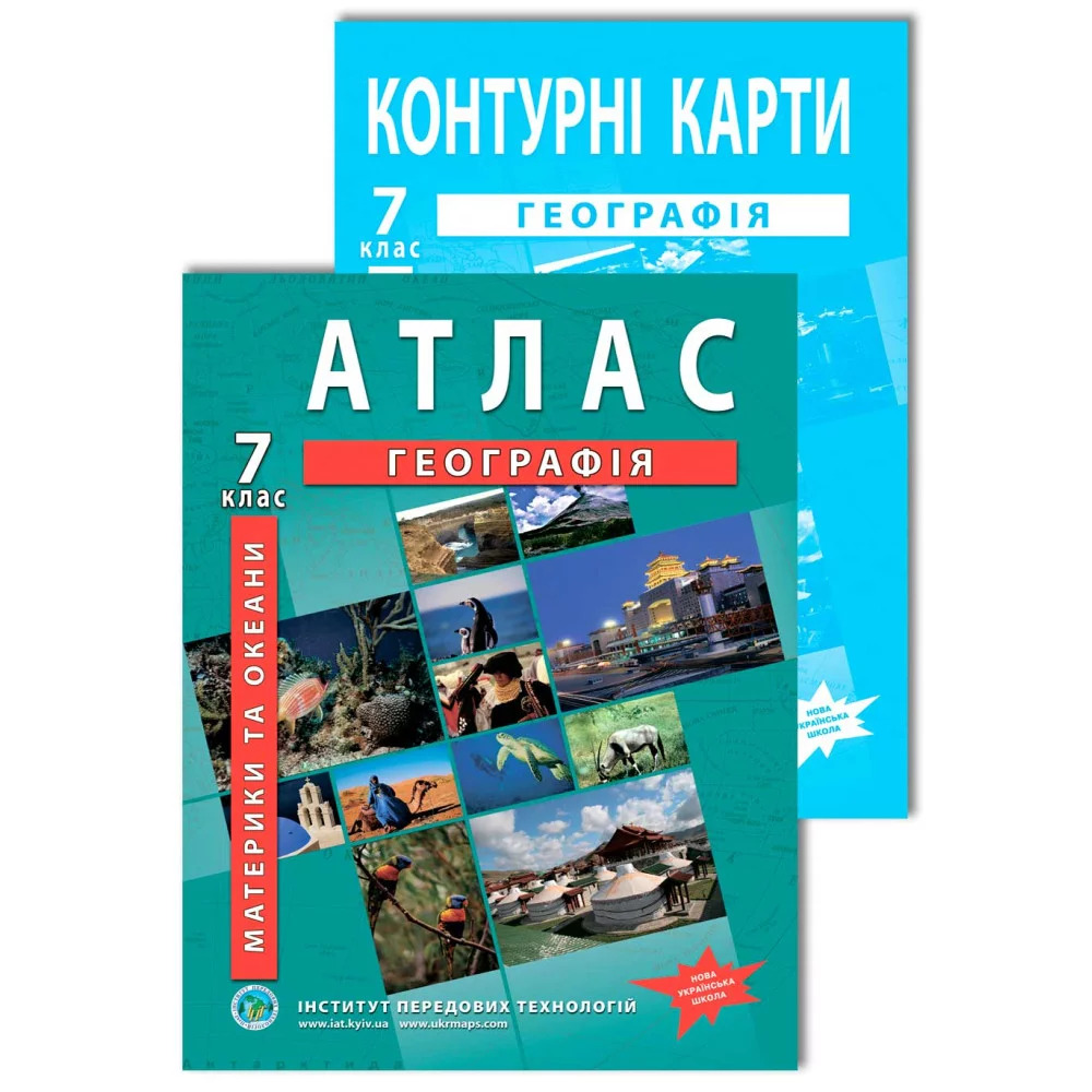 Комплект посібників: Атлас і контурні карти з географії для 7 класу. Материки і океани. - по привлекательной стоимости