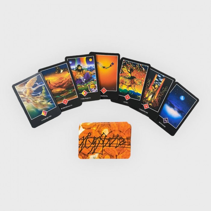 Масти также названы по-иному: вместо Жезлов мы видим Огонь, вместо Кубков - Воду, вместо Мечей - Облака, а вместо Пентаклей - Радугу. Сами масти не прописаны на картах - Младшие Арканы можно отличить друг от друга лишь цветом кристалла-ромбика, расположенного по центру нижней части. У Огня эти ромбики красные, у Воды - голубые, у Облаков - серые, а у Радуги - соответственно радужные. Все Младшие Арканы и фигурные карты Ошо Дзен Таро прорисованы. Купить Ошо Дзен Таро можно тарологу любого уровня - как начинающему, так и профессионалу. Для того чтобы работать с этими чудесными картами, необязательно даже вообще иметь какой-то опыт. Многие выбирают эту колоду в качестве своей самой первой и уже через несколько недель практики полностью с ней осваиваются.