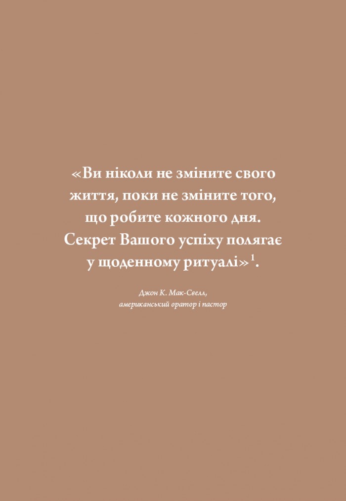 Кожен із нас хоче стати щасливим, упевненим у собі й успішним. Ми читаємо розумні книги з порадами, як цього досягти. Щороку / щомісяця / щопонеділка починаємо докладати певних зусиль, прямуючи до поставленої мети. Однак постійно щось іде не так, і ми опускаємо руки, бо у нас немає часу / сил / змоги впроваджувати такі необхідні зміни у своє життя.