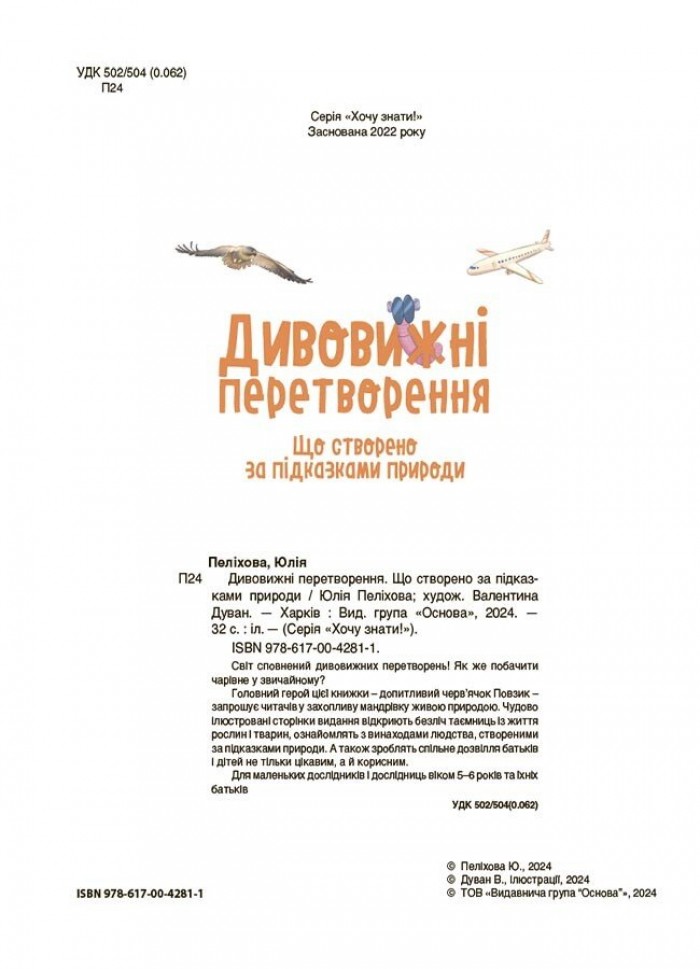 Книжку створено для маленьких дослідників і дослідниць віком 5–6 років та їхніх батьків, для цікавого й корисного спільного дозвілля.