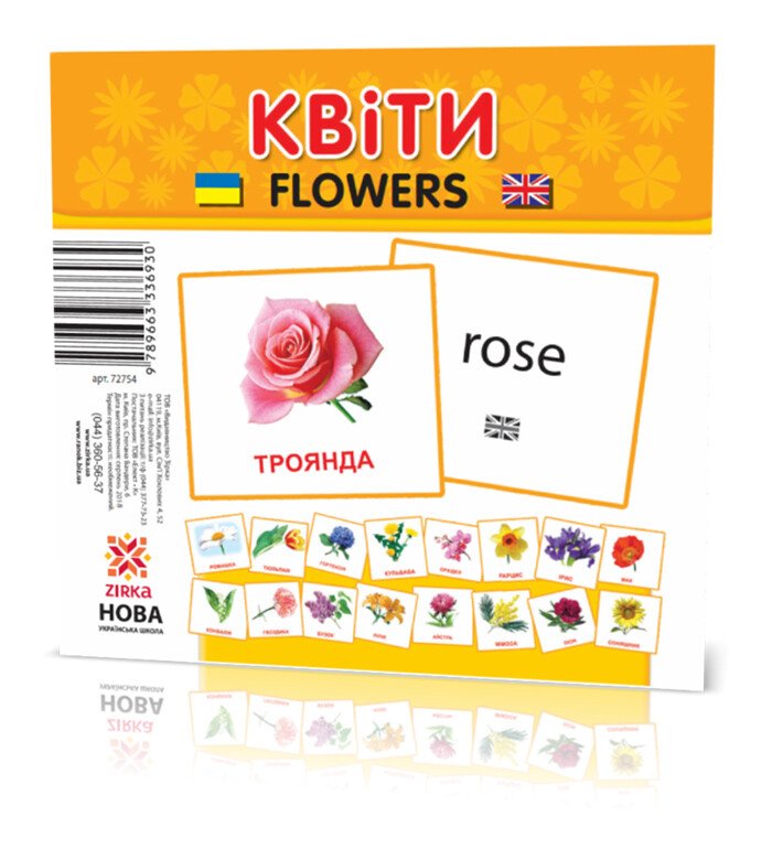 Картки, на кожній з карток зображені різні квіти та їх назви.