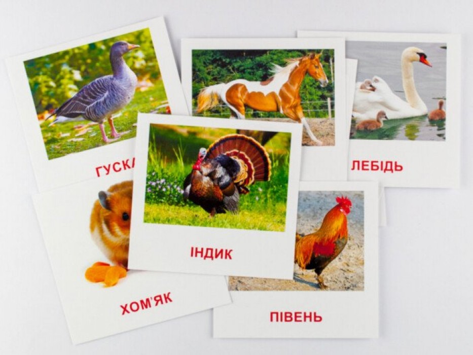 Картки, на кожній з карток зображені різні домашні тварини та їх назви.
