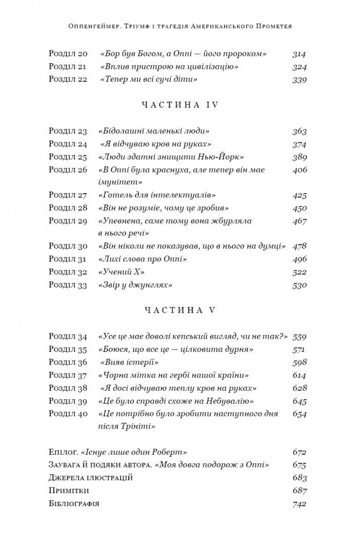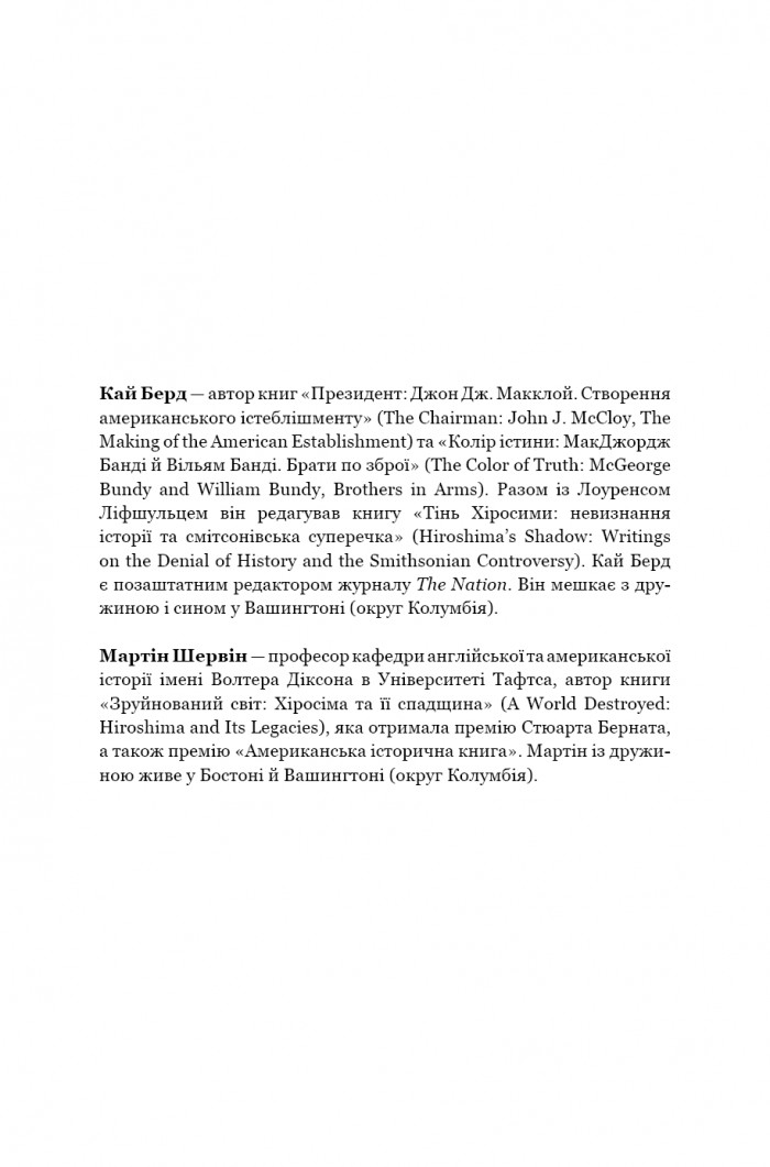 Книга «Оппенгеймер. Тріумф і трагедія Американського Прометея» є втіленням 30-ти років інтерв’ю з родиною, друзями й колегами Оппенгеймера, пошуків у файлах ФБР, результатом аналізу записів промов і допитів, знахідок приватних документів. Скрупульозна біографія, у якій означено засадничі для наукового світу й історії загалом віхи життя найвідомішого вченого свого покоління, однієї зі знакових постатей ХХ ст., для якої тріумф і трагедія міцно переплелися гордієвим вузлом.
