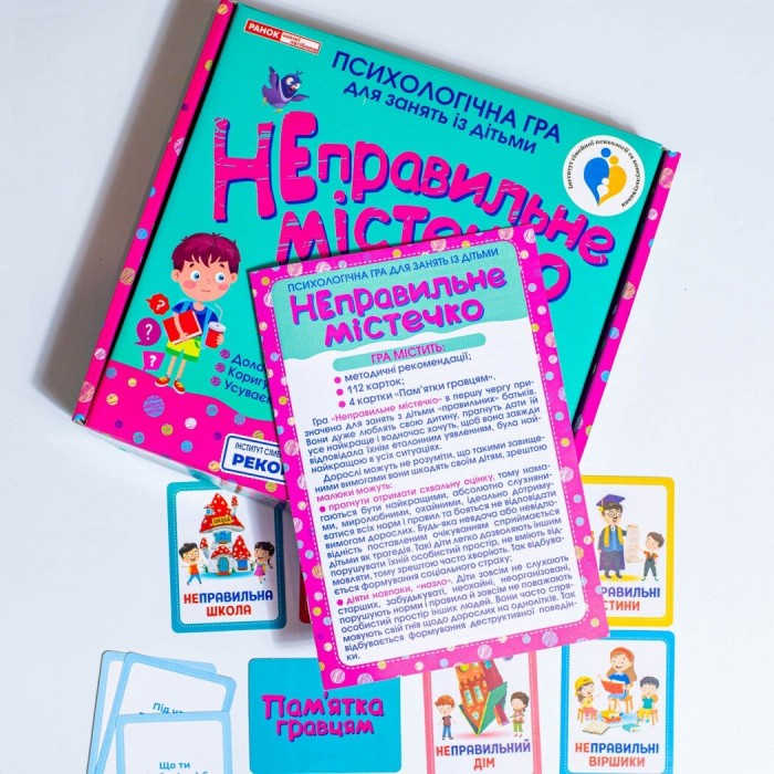 У невимушеній та веселій атмосфері гра дозволяє дітям вільно проявляти емоції, жартувати та навіть зізнаватися у своїх «неправильностях». Це не просто гра, це можливість створити щасливі спогади з родиною! Ідеальний вибір для педагогів, психологів, батьків та всіх, хто прагне дати своїм дітям найкраще! Якісний друк, унікальний дизайн та величезна кількість позитиву – все це захопить як дітей, так і дорослих! Не зволікайте! Дайте вашій родині можливість стати щасливішою разом з «Неправильним містечком».