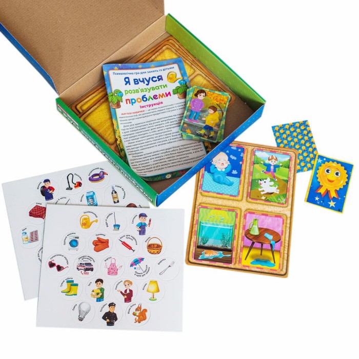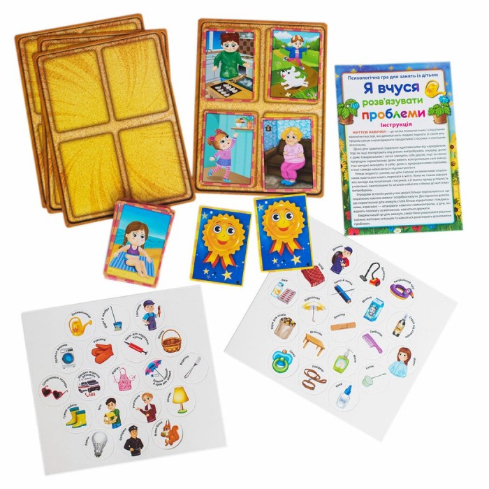 - 3-поміж жетонів гравець знаходить той, що допоможе розв’язати проблему, та кладе його біля картки з відповідною проблемою, пояснюючи свій вибір.