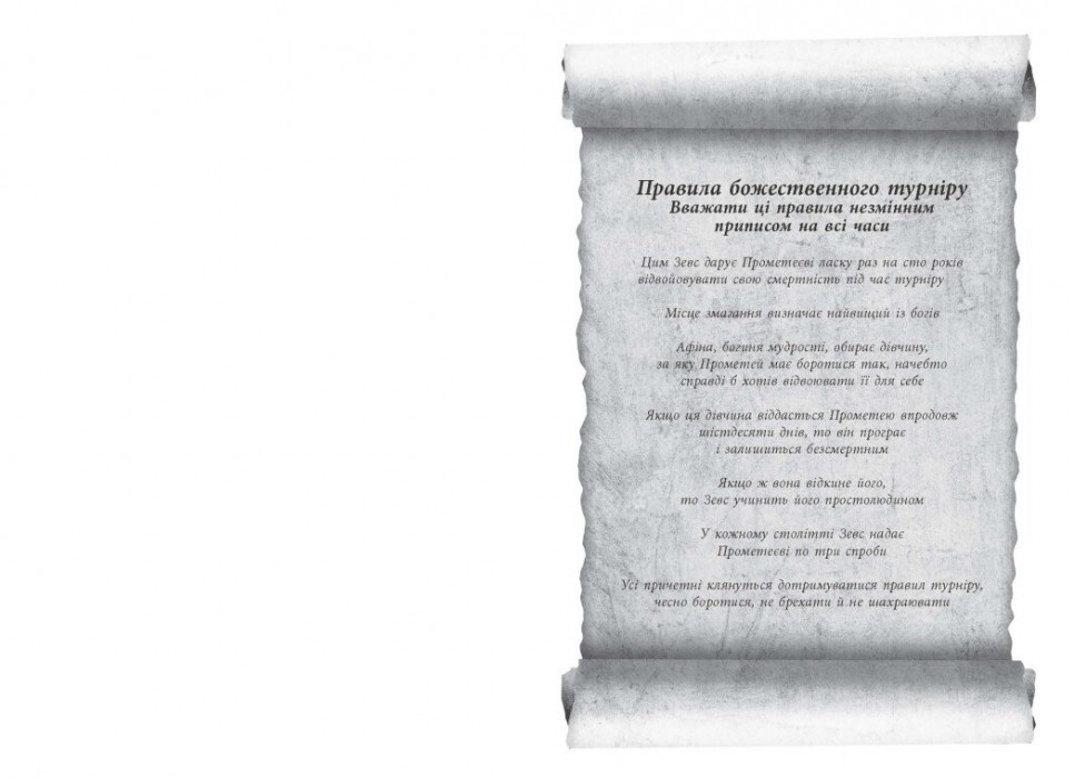 Джесс — особлива, хоча вона про це ще не здогадується. Не здогадується про це й Кайден, хай він насправді й могутній титан Прометей. Він думає хіба що про турнір, в якому невдовзі візьме участь і який жадає виграти. Йому байдуже на дівчину, яка, за умовою турніру, опиниться в центрі уваги олімпійських богів. Байдуже, що він, завиграшки може розбити її серце. Але навіть в божественній грі іноді щось іде не так…