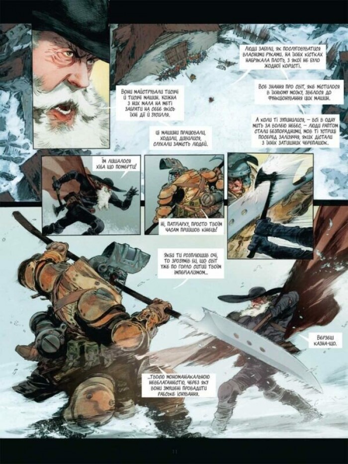 Майбутнє. Здається, що всі сліди технологій зникли з лиця Землі. Перед старовинним селом Ла-Кадьєр-д’Азур зустрічаються дві армії. Зі свого командного намету харизматичний старий розмовляє зі своїми радниками. Вороже налаштований до всіх форм прогресу, чоловік, якого всі називають «Патріархом», готується до наступу, щоб знищити «машину», сконструйовану його супротивником. Бо він пам’ятає…