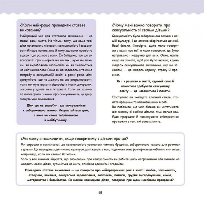 + Бонус до книжки — фахові поради для дорослих про те, як саме розмовляти з дітьми про сексуальність, коли і як це робити.