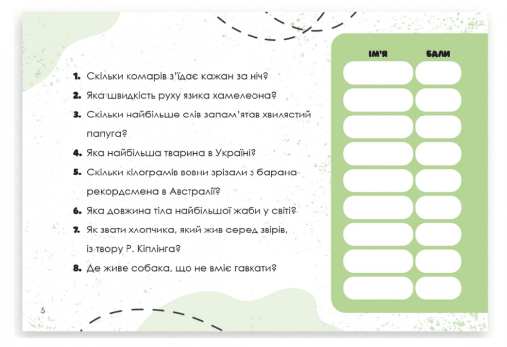Запитання добирали таким чином, щоб гравцям нелегко було на них відповісти, але дуже цікаво дізнатися відповідь. Це спонукає допитливість і розширює загальну ерудицію. Наприклад, «Скільки комарів з'їдає комар за ніч?», чи «Яка найбільша тварина в Україні?», або «Яка довжина тіла найбільшої жаби у світі?», чи «Де живе собака, що не вміє гавкати?»