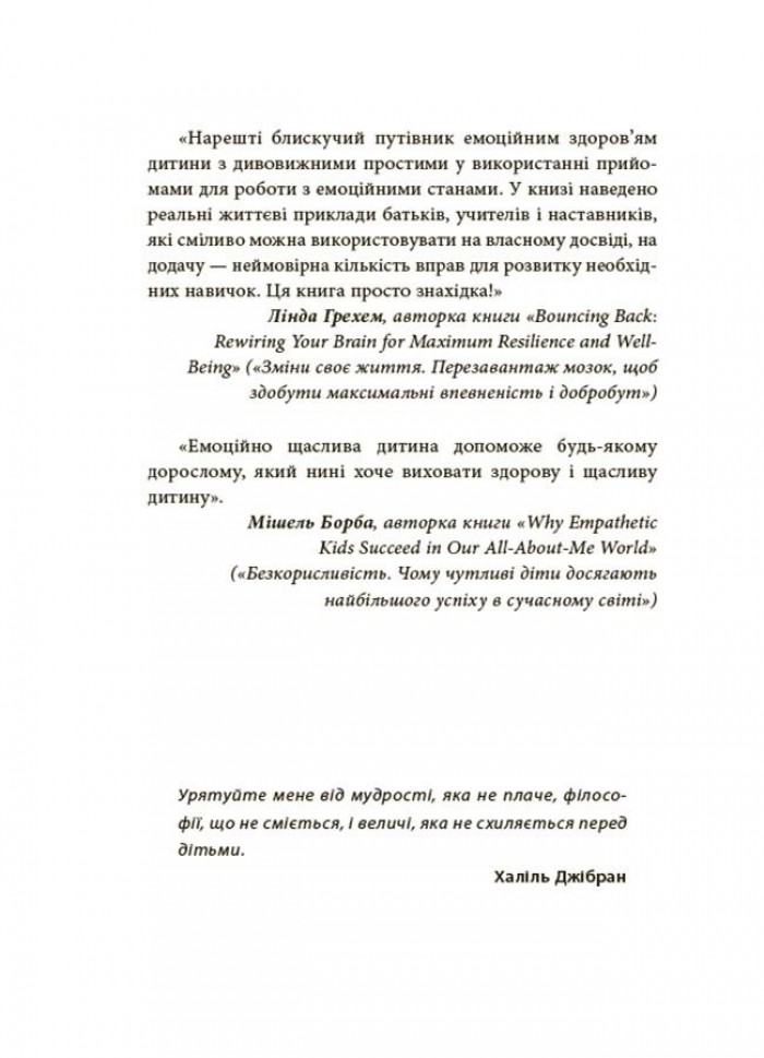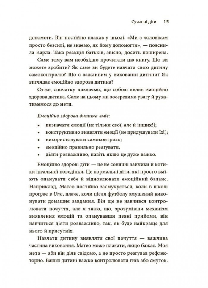 Ця книга допоможе батькам закласти у дитину ключові практичні навички для розвитку емоційного інтелекту, які допоможуть впоратися з найсильнішими почуттями.