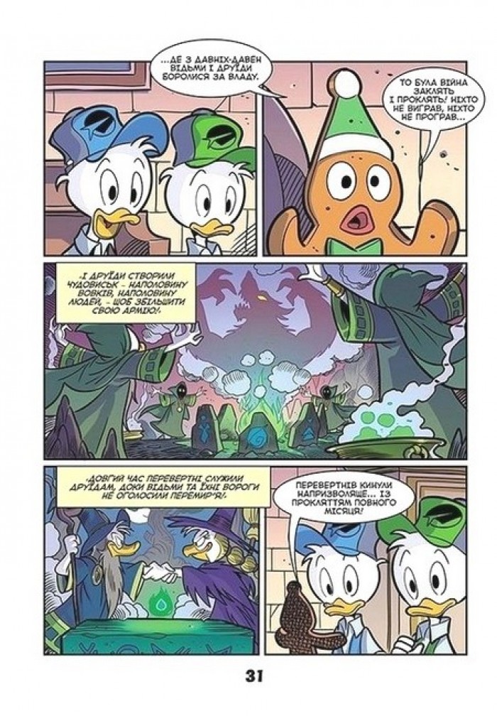 2. Перебування каченят Ґ’юї, Дьюї і Луї у школі містечка Буасомбр добігає кінця. Друзі вже готуються повертатися додому... але на них знову чекає пригода, і ще яка! Їм доведеться познайомитися з мешканцями таємничого Чорного Лісу. Чи вистачить нашим героям сміливості зустрітися сам на сам зі страхітливими створіннями, породженими магією давньої вендети? Чи зможуть вони подолати страх і врятувати себе і друзів? Прочитай цю історію - і дізнайся!